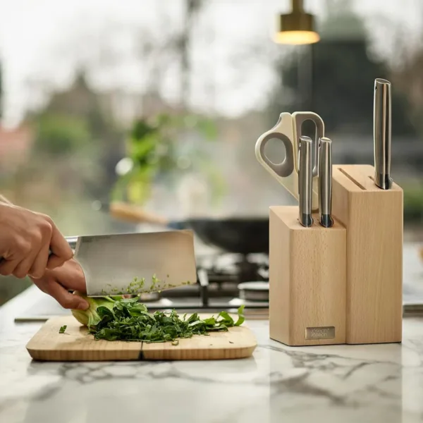 Juego de 5 piezas cuchillos tijera y cepo de madera