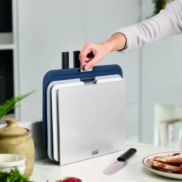 Set de 3 cuchillos y 3 tablas para cortar con soporte Nest