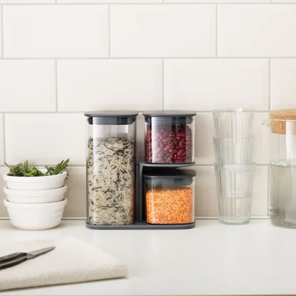 Set de 3 contenedores Podium con soporte – Gris