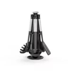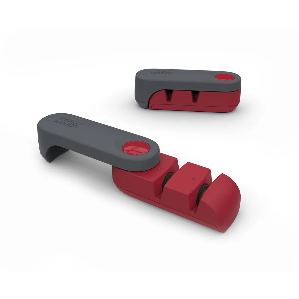 Este elegante afilador de cuchillas giratorio se puede plegar cuidadosamente para un almacenamiento compacto.