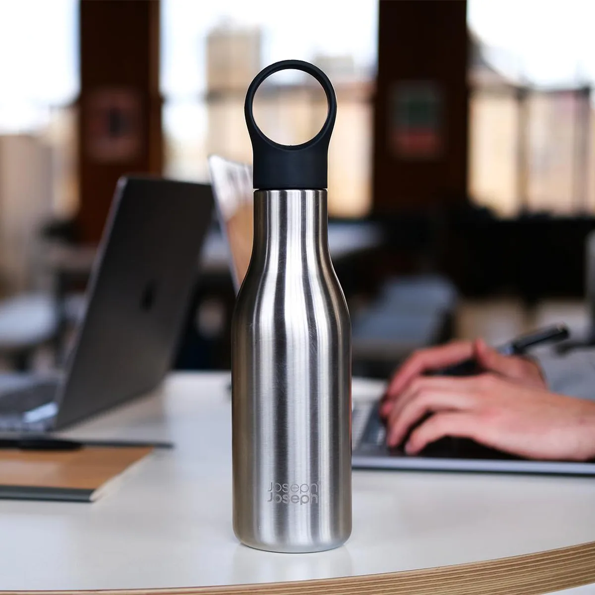 El diseño inteligente de esta botella de agua mantiene las bebidas calientes hasta 12 horas, frías hasta 24 horas y permanece sin condensación en su bolsa gracias al acero inoxidable 18/8 de doble pared y aislado al vacío con una capa de cobre que refleja el calor.
