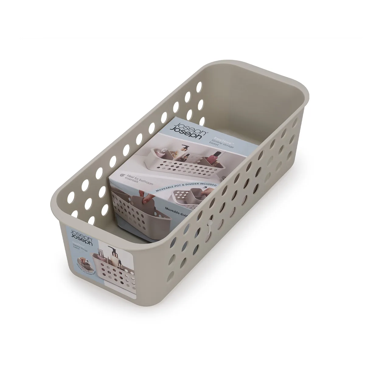 Esta delgada cesta de almacenamiento de baño es perfecta para organizar en estantes o dentro de cajones y puede almacenar varios elementos esenciales para el baño.