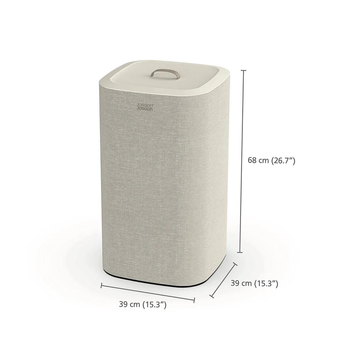 Con un diseño elegante y funcional, el canasto Tota de 60L está pensado para hacer más eficiente la rutina del lavado. Su doble compartimento permite separar fácilmente la ropa clara, oscura o de color, y sus bolsas removibles hacen que el transporte hasta la lavadora sea más cómodo y ordenado.