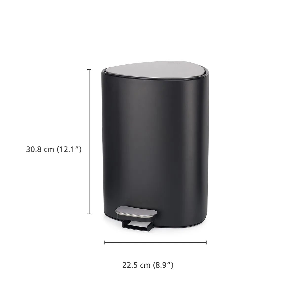 Perfectamente diseñado para encajar en la esquina, este elegante cubo de acero de 5 litros tiene un acabado negro mate de primera calidad con un pedal y una tapa de acero inoxidable que elevarán cualquier habitación. Cuenta con un práctico compartimiento en el reverso para guardar un rollo de bolsas, mientras que el cubo interior extraíble hace que sea muy fácil de vaciar.