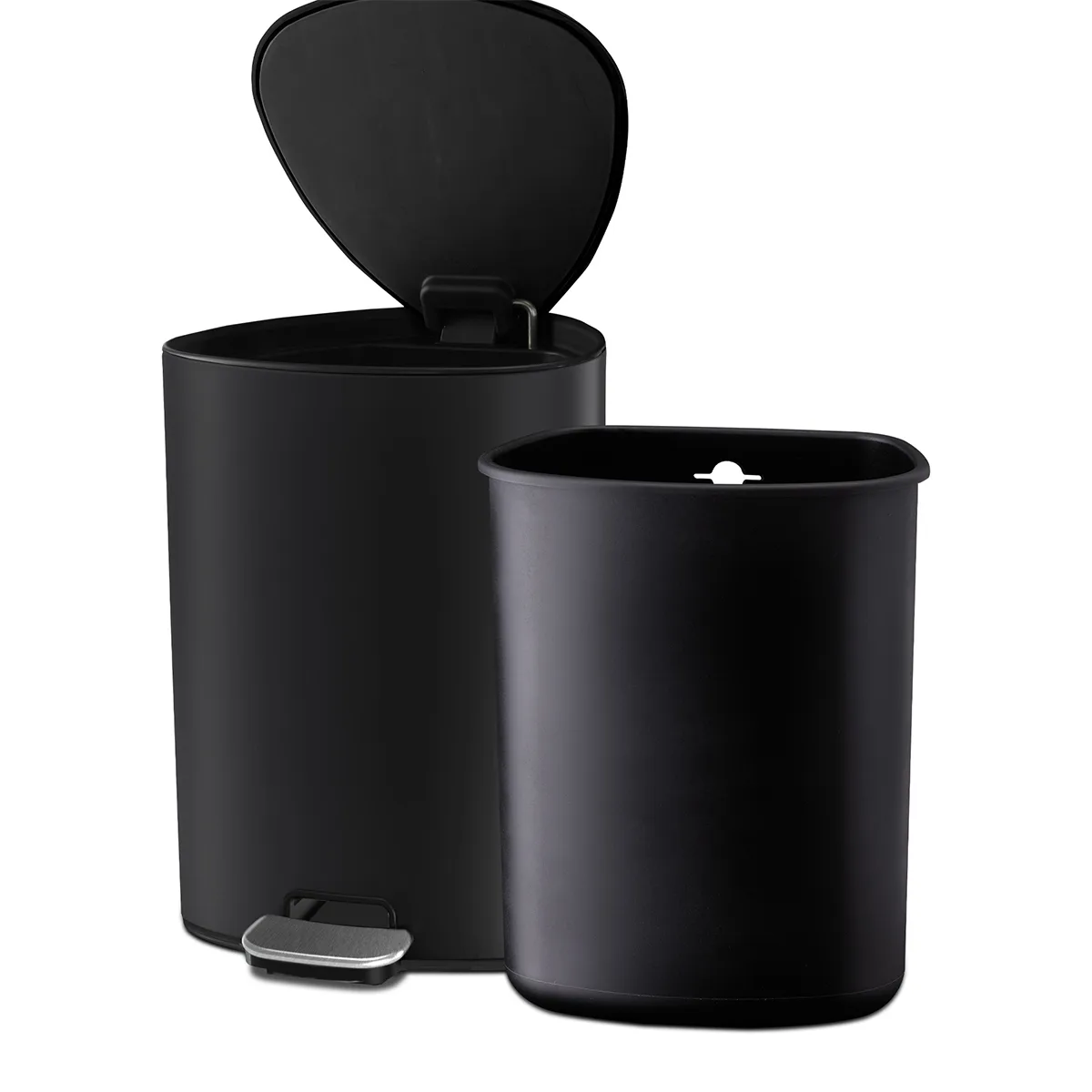 La tapa y el pedal de acero inoxidable tienen un mecanismo de cierre suave.