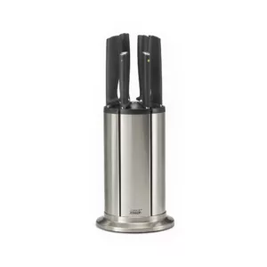 Comedero para pájaros: diseño elegante y funcional en acero inoxidable negro.