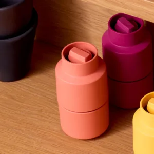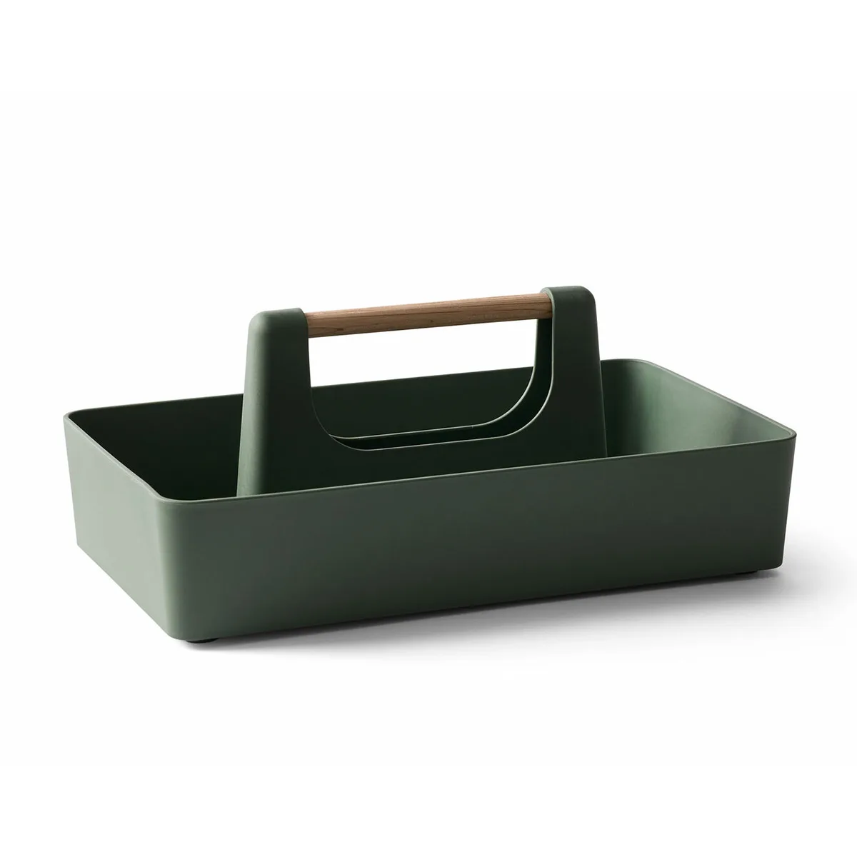 El organizador Basilea se basa en un material biocompuesto hecho de fibras de celulosa a base de madera procedentes de bosques certificados y gestionados de forma sostenible. El material le da a los productos una sensación cálida, natural y terrosa.El mango es de madera de roble.