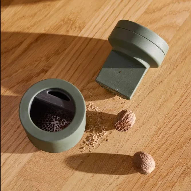 ¡El rallador de nuez moscada Billund hace que sea muy fácil de almacenar y obtener todo el sabor de las nueces moscada enteras mientras mantiene sus dedos seguros! Retire la tapa en la parte superior para guardar sus nuez moscada.La serie Billund es un diseño divertido y lúdico inspirado en los coloridos bloques de construcción de Dinamarca. Se basa en un material biocompuesto hecho de fibras de celulosa a base de madera procedentes de bosques certificados y gestionados de forma sostenible.El material le da a los productos una sensación cálida, natural y terrosa.Además, el material tiene una baja huella de carbono y, a diferencia de los biomateriales basados en cultivos, este biocompuesto no interfiere con la cadena de producción de alimentos.