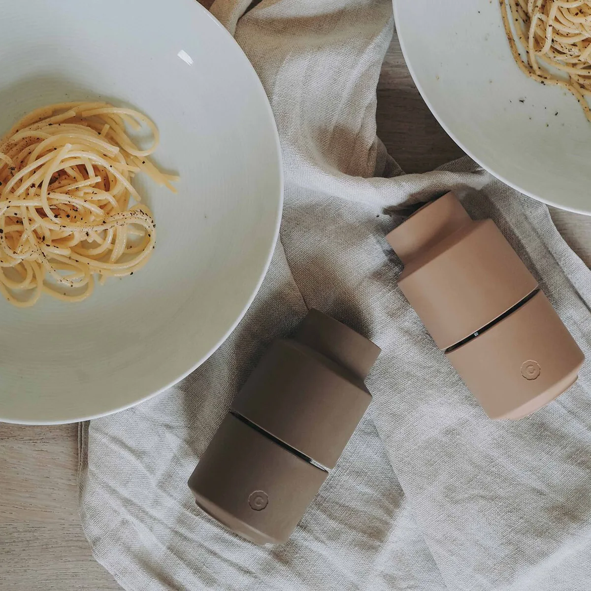 El set de molinillos Billund consta de 2 molinillos invertidos que no dejan ningún residuo en la mesa. Tienen un tapón de silicona en la parte inferior que hace que sea fácil de llenar con cualquier especia o mezcla que le guste usar.Los molinillos están montados con el mecanismo patentado de CrushGrind®, muele sal, pimienta, hierbas secas y la mayoría de las especias.La serie Billund es un diseño divertido y lúdico inspirado en los coloridos bloques de construcción de Dinamarca. Se basa en un material biocompuesto hecho de fibras de celulosa a base de madera procedentes de bosques certificados y gestionados de forma sostenible.El material le da a los productos una sensación cálida, natural y terrosa.Además, el material tiene una baja huella de carbono y, a diferencia de los biomateriales basados en cultivos, este biocompuesto no interfiere con la cadena de producción de alimentos.