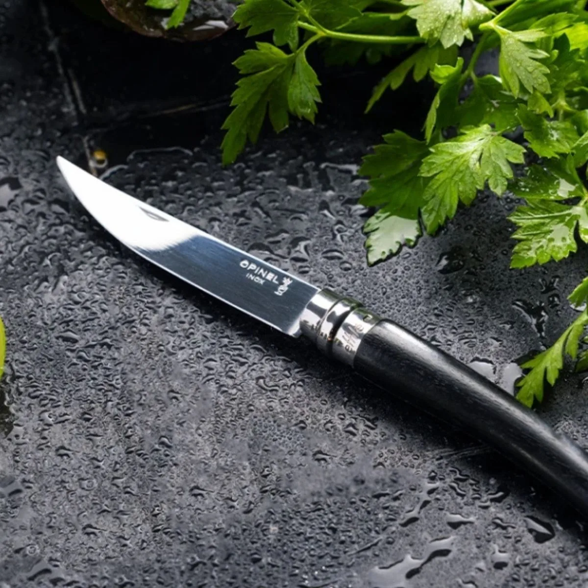 Un cuchillo de carne inspirado en la forma icónica de nuestra clásica navaja plegable No.08. El corte impecable combinado con los clásicos mangos de madera aporta un toque de «je ne sais quoi» francés a cualquier mesa. El diseño actualizado de la colección Table Chic II cuenta con un mango de madera redondeado y una hoja de acero inoxidable en forma de Yatagan para garantizar una calidad de corte inigualable. La almohadilla (inspirada en el Virobloc® de nuestras navajas plegables) presenta una superficie plana, por lo que los cuchillos permanecen en su lugar cuando se colocan sobre la mesa.