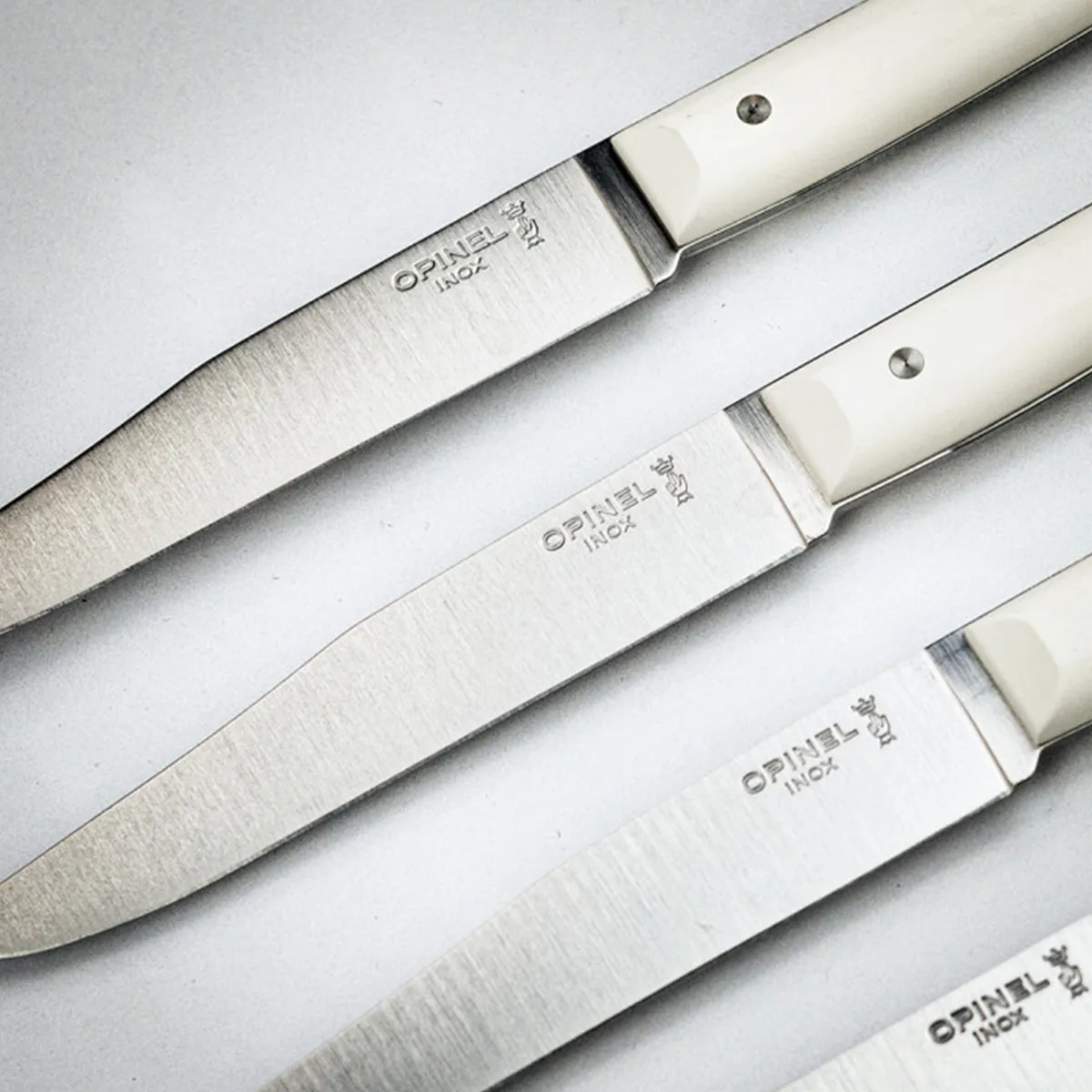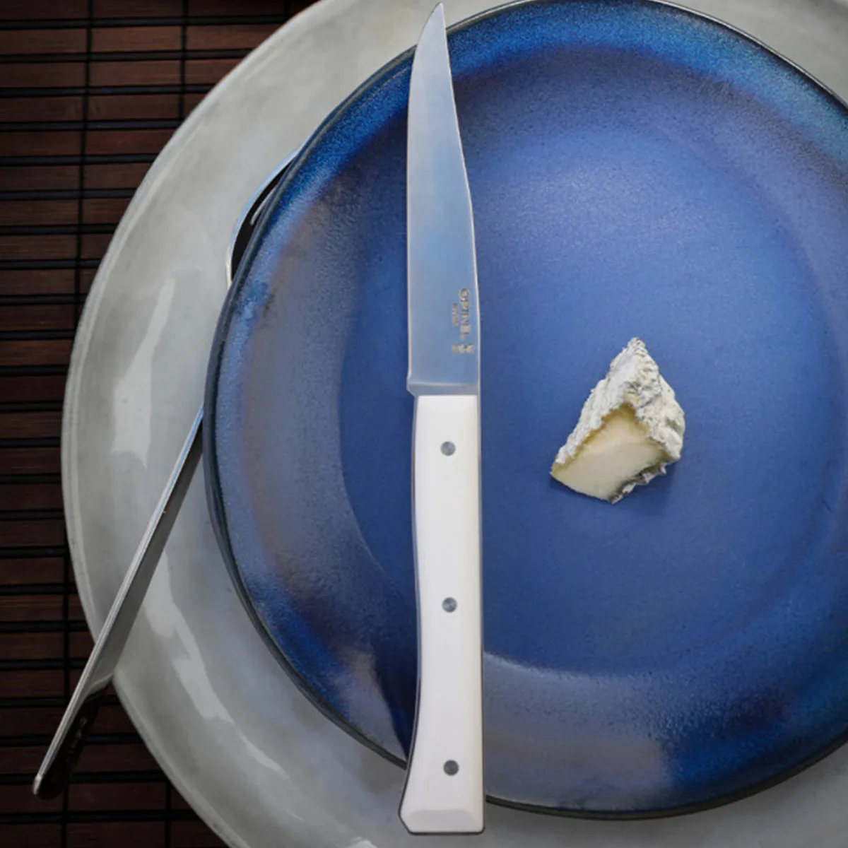 Diseño elegante y duradero con hoja de acero inoxidable y mango remachado, ideal para una mesa refinada.