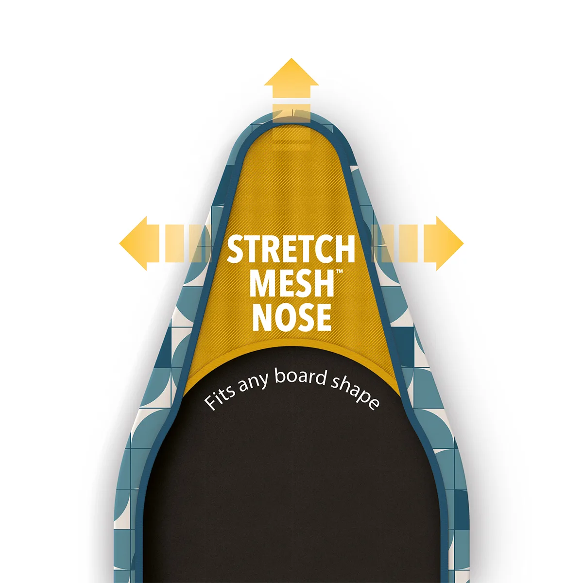 La nariz StretchMesh™ se adapta rápida y fácilmente a la punta de cualquier tabla