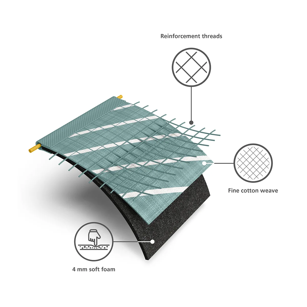Olvidate de las fundas que se corren o se arrugan. Flexa se adapta perfectamente a cualquier tabla. Correa elástica y cordón tensor con palanca fácil. Su capa superior de algodón ripstop es resistente a desgarros, mientras que la base de espuma ofrece una superficie de planchado suave y cómoda. Ajuste seguro, máxima durabilidad y cero frustraciones.