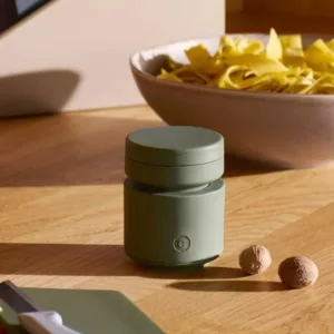 Se adapta a la mayoría de las puertas de heladeras y cuenta con un labio patentado de acero inoxidable y silicona que asegura un vertido 100 % libre de goteo. La tapa abatible se abre automáticamente, mantiene la temperatura y evita condensación en la mesa. Fácil limpieza, todas las piezas aptas para lavavajillas. La funda se puede lavar a mano o en ciclo suave a 30 °C.