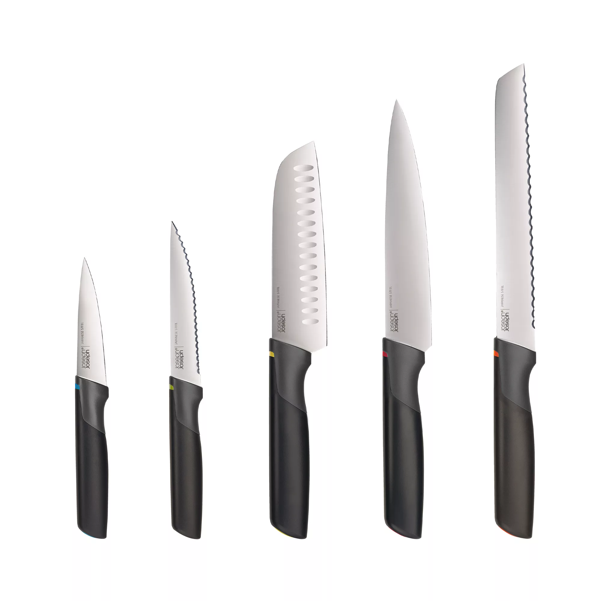 Incluye 5 cuchillos esenciales para el día a día, con hojas de alta calidad y diseño ergonómico.