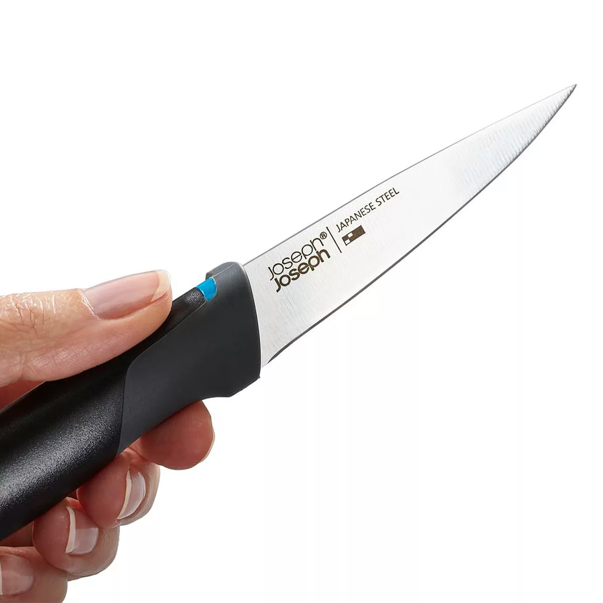 1 cuchillo de pan de 8″ todos hechos de acero inoxidable japonés y con mangos ergonómicos codificados por colores. Cuando no están en uso, los cuchillos se pueden guardar de forma segura en la bandeja de almacenamiento del cajón.
