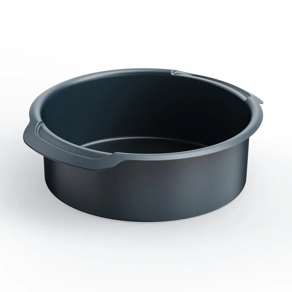 Este molde para tortas redondo apilable cuenta con asas fáciles de tirar en los lados para proporcionar un punto de agarre más grande cuando se usan guantes de horno, lo que facilita y hace que sea más seguro manejarlo.