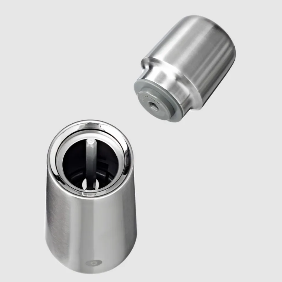 El molinillo Stockholm combina elegancia escandinava y funcionalidad. Su diseño minimalista en acero inoxidable con acabado satinado aporta un toque moderno e industrial a cualquier mesa.