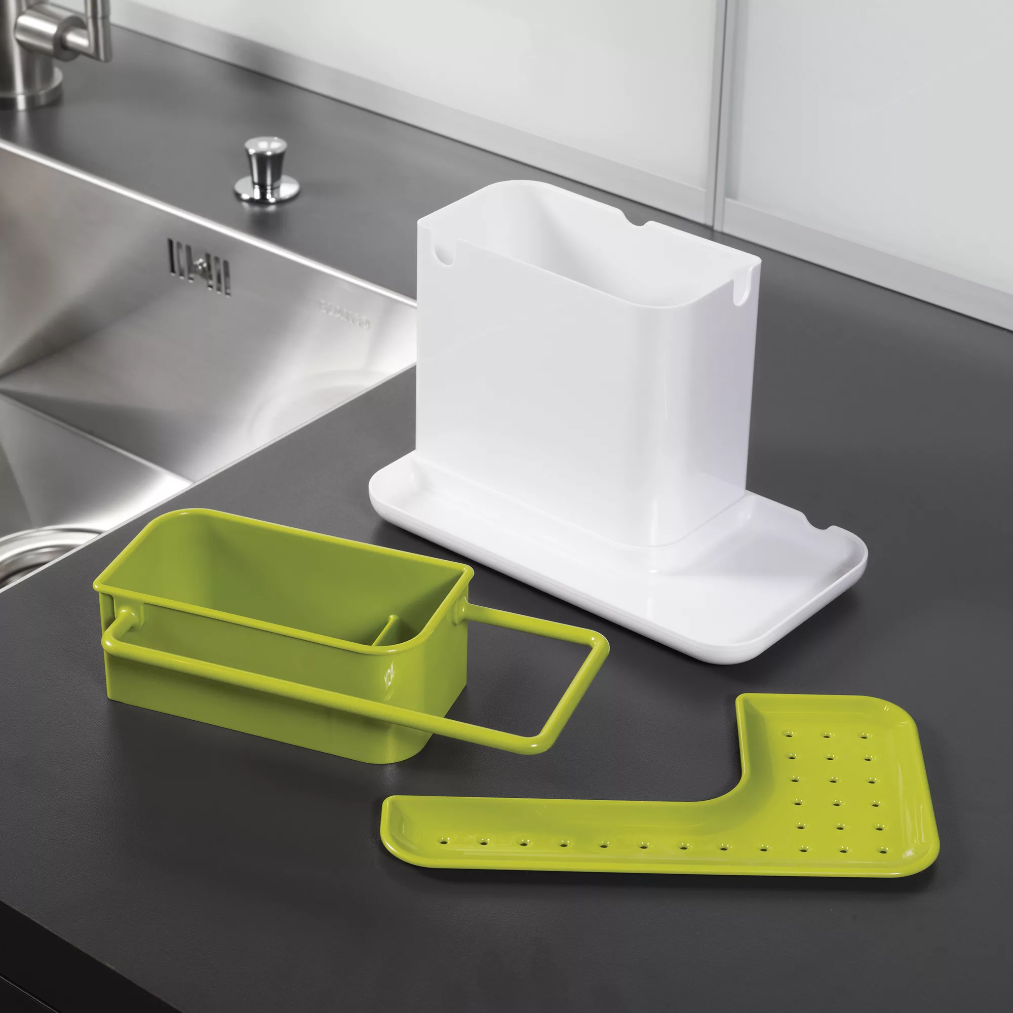 Caddy viene con una gran bandeja de drenaje para recoger el exceso de agua, por lo que puede despedirse de los residuos de jabón en el lado de su fregadero. Simplemente separe la bandeja de goteo y el depósito a continuación para limpiarlo.