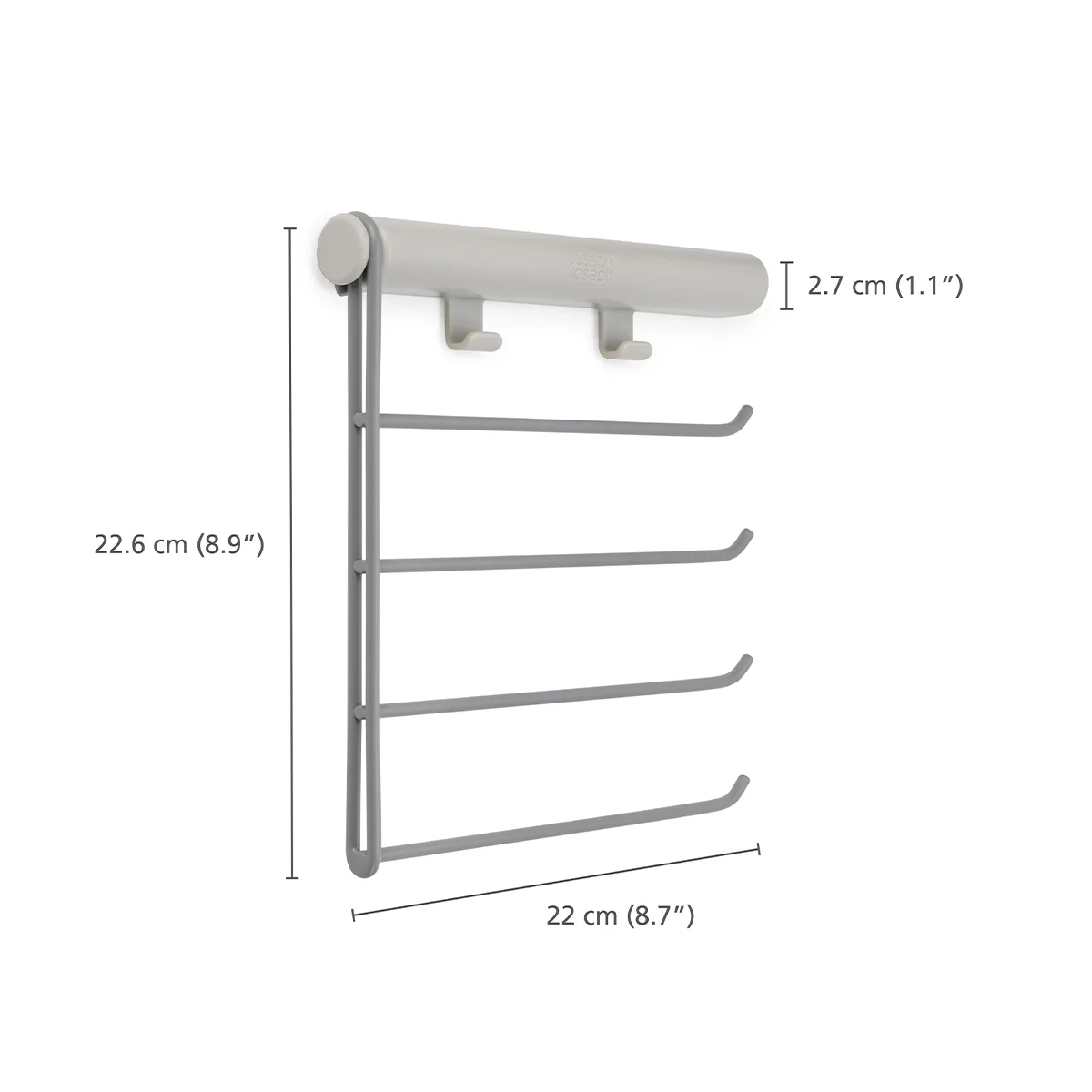 Esta ordenada solución de almacenamiento es perfecta para guardar accesorios como cinturones, corbatas y bufandas que son famosos por perderse fácilmente en cajones y armarios. Perfecto para montar dentro de armarios, este diseño inteligente se coloca plano contra la superficie de montaje para ahorrar espacio y tiene rieles que se pueden levantar para quitar los artículos almacenados con facilidad.