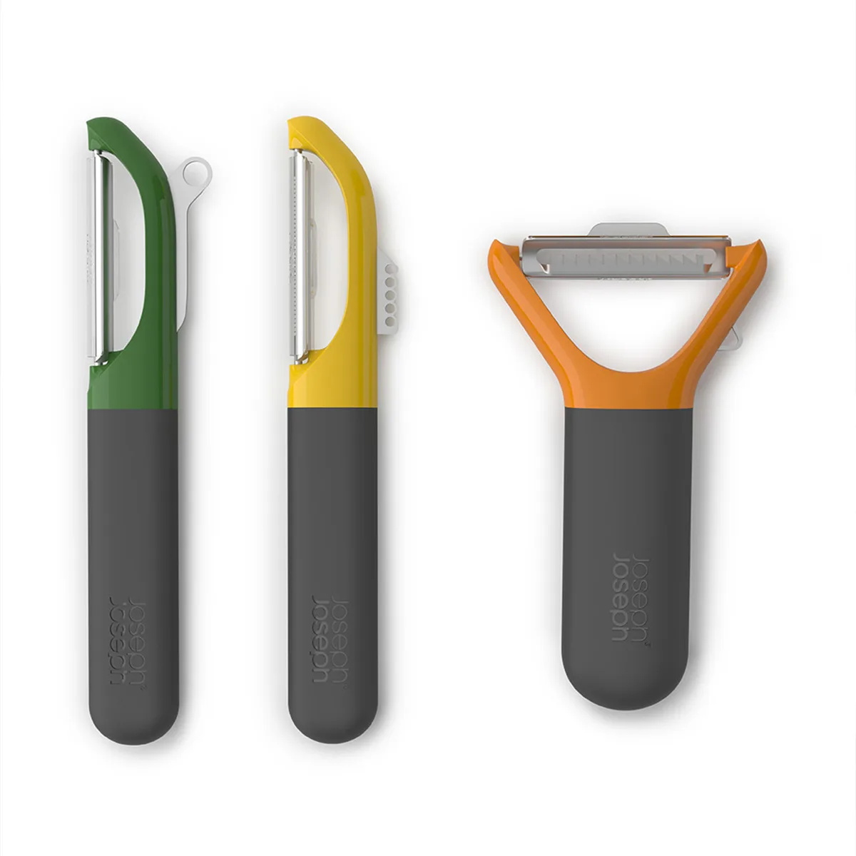 Este pelador recto es mucho más que un simple utensilio. Con tres herramientas integradas, se adapta perfectamente a todas tus necesidades cotidianas en la cocina.
