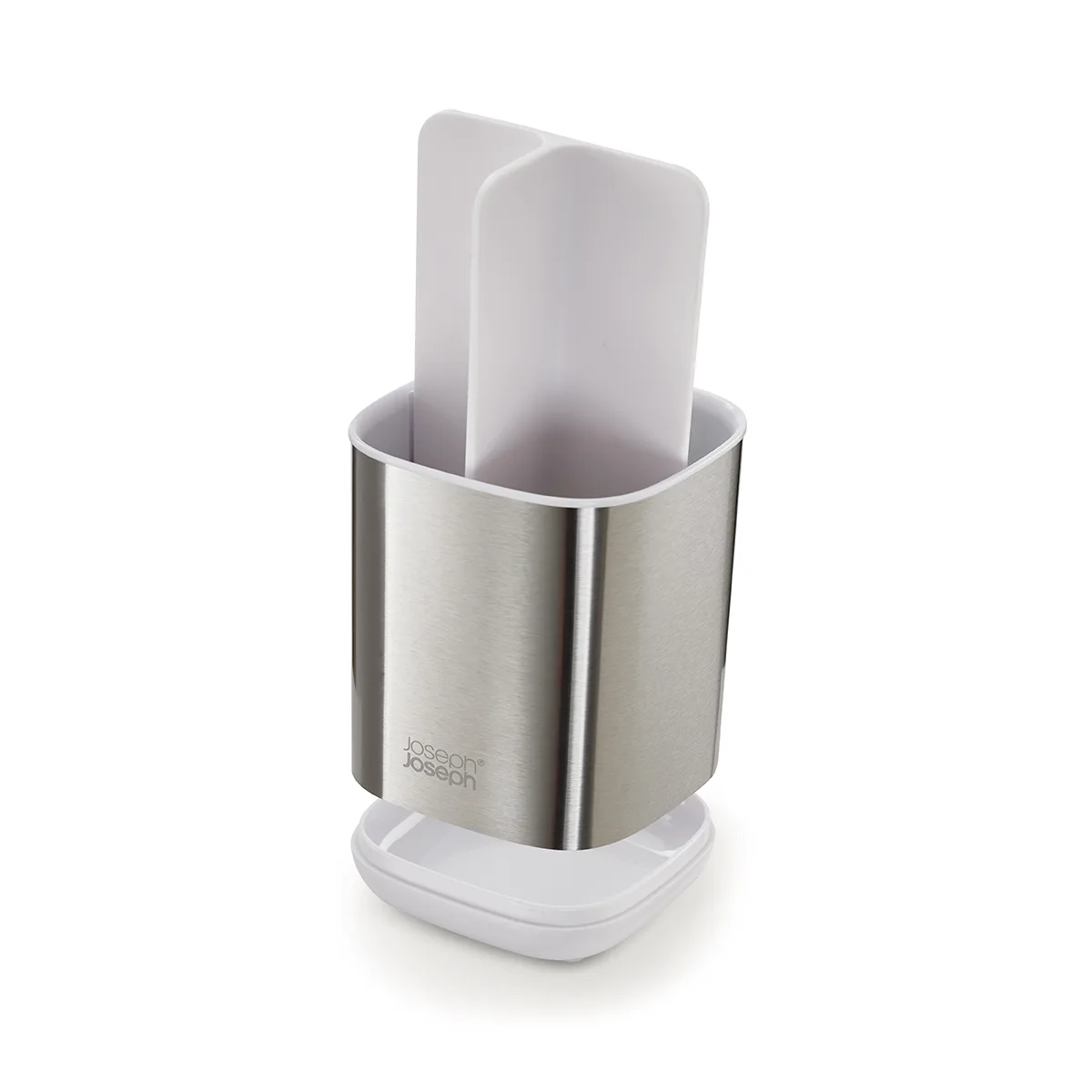 Este compacto porta cepillos de dientes se divide en diferentes secciones para proporcionar un almacenamiento organizado para una variedad de artículos de cuidado bucal, como cepillos de dientes manuales o eléctricos y tubos de pasta dental.
