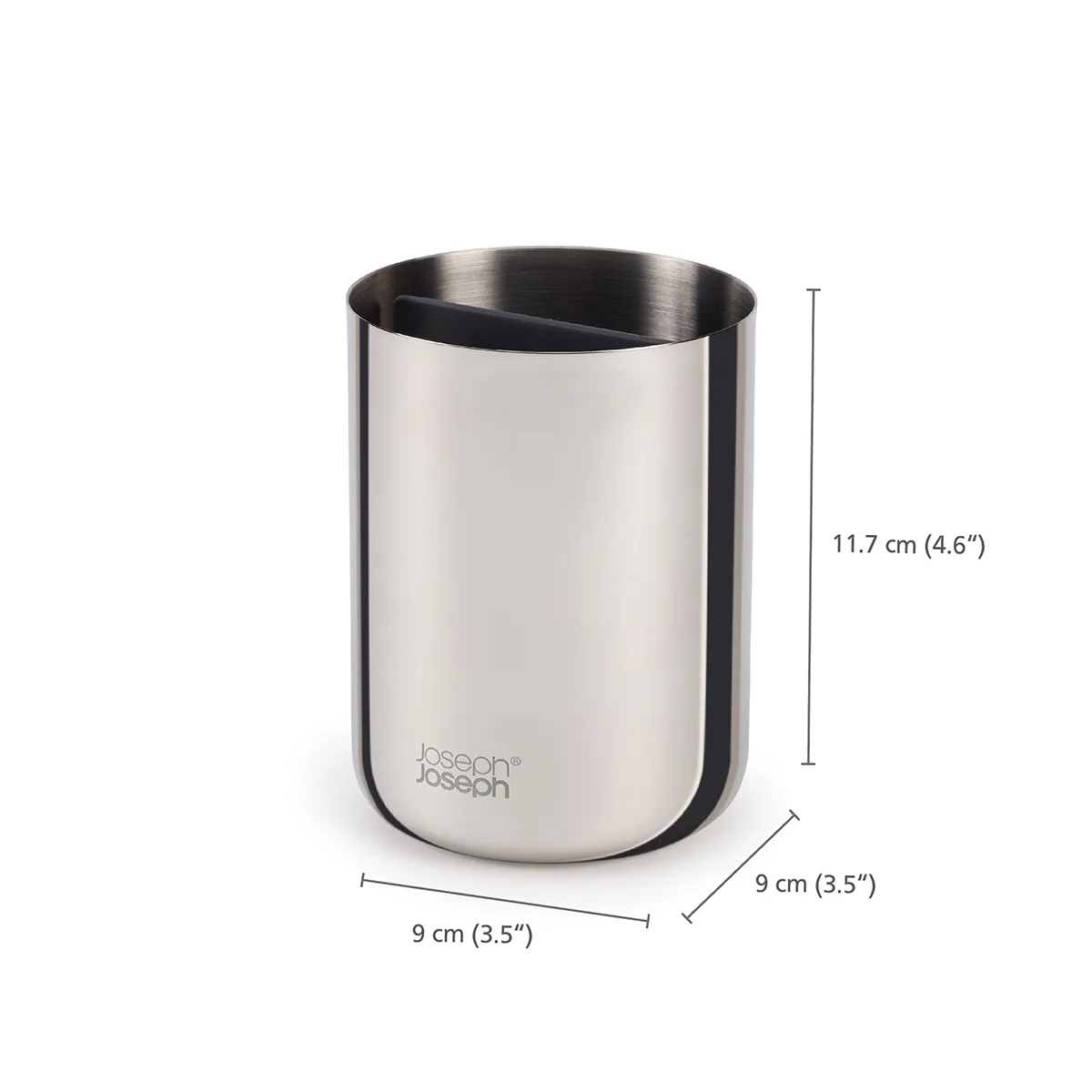 El carrito de cepillos de dientes de acero inoxidable pulido proporciona un almacenamiento organizado para sus cepillos de dientes y tubos de pasta de dientes. Se desmonta para facilitar la limpieza.