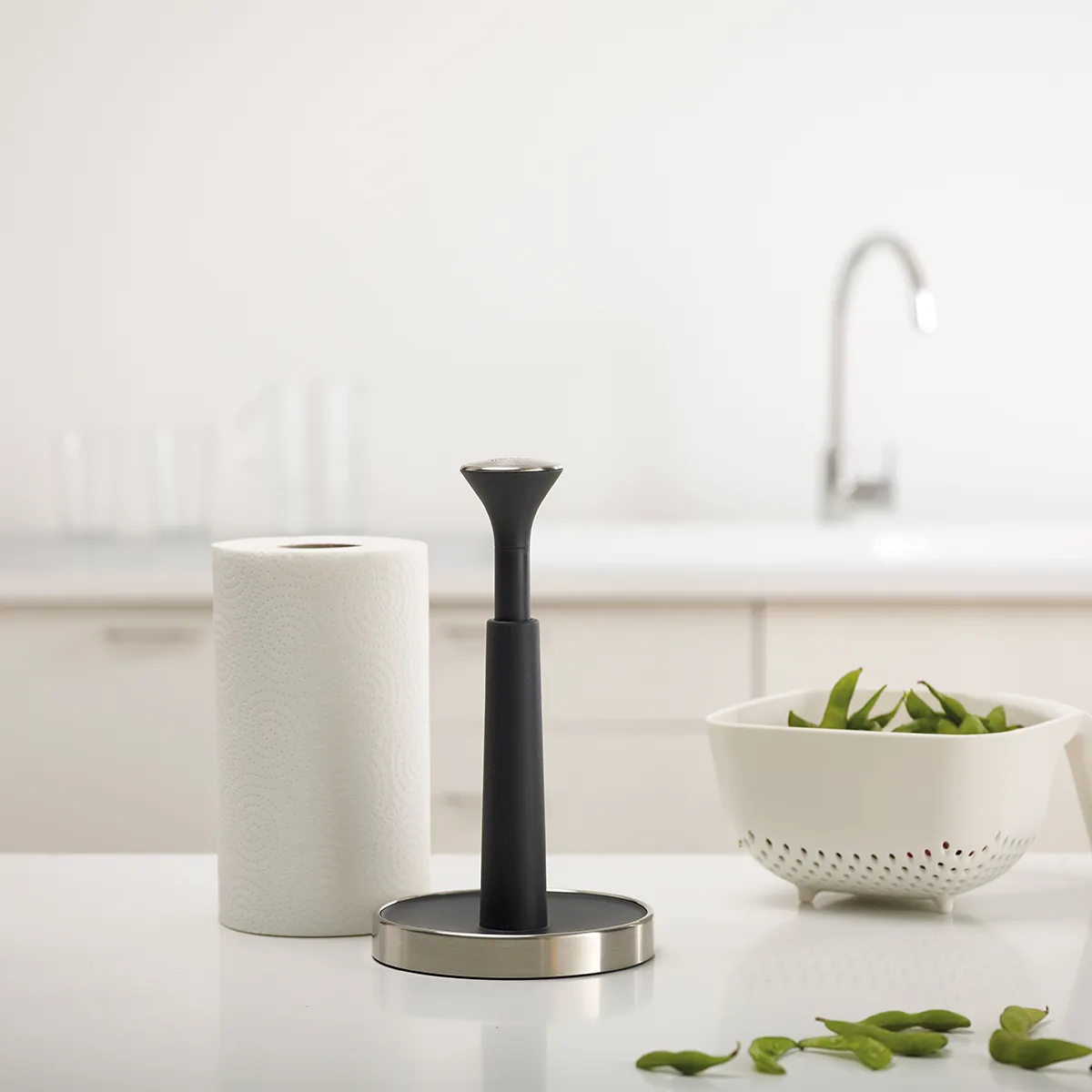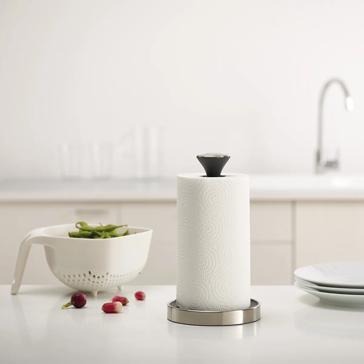 Diseñado para usarse con una sola mano, este porta rollo te permite agarrar toallas de papel incluso con las manos ocupadas. Con base antideslizante, sistema de bloqueo fácil y recarga rápida, es práctico y elegante.