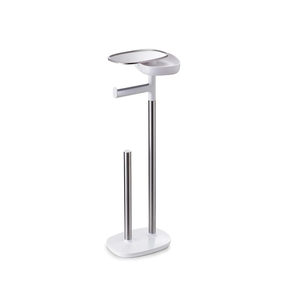 Este portarrollos de papel higiénico independiente cuenta con un estante de doble función y tiene espacio para almacenar hasta 4 rollos de papel higiénico en su base.