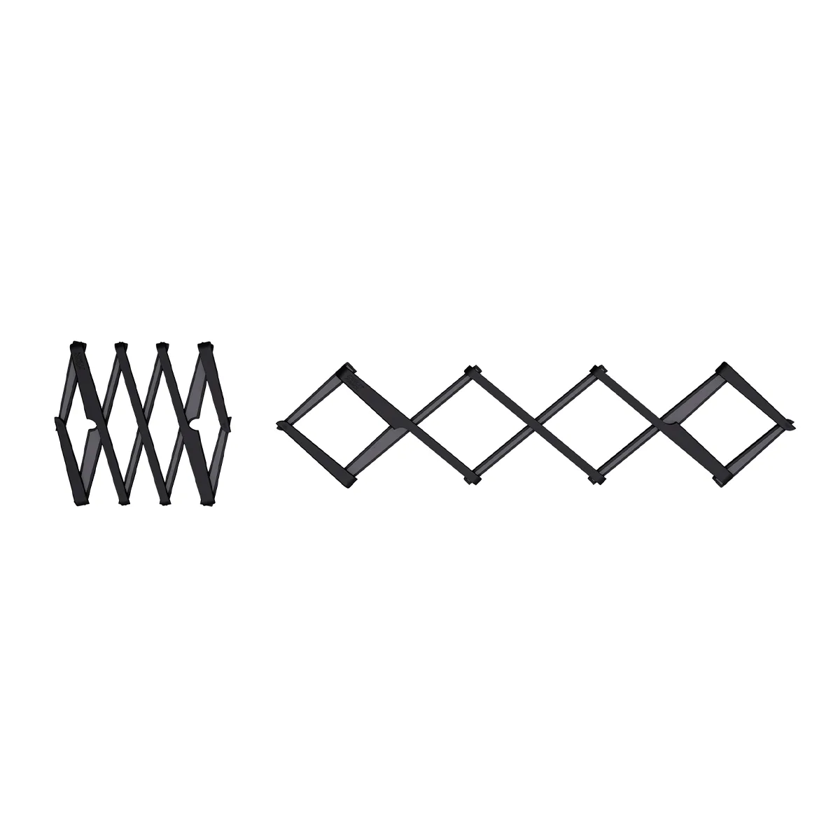 El tamaño de este práctico posa fuente se puede ampliar o compactar fácilmente hasta la cantidad de espacio que necesite para sus ollas y sartenes y, cuando no esté en uso, se pliega ordenadamente para guardarlo en un cajón.