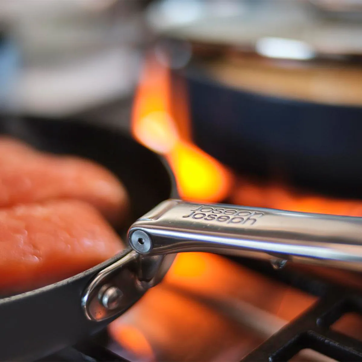 Ahorra hasta un 50% más de espacio que las sartenes estándar.