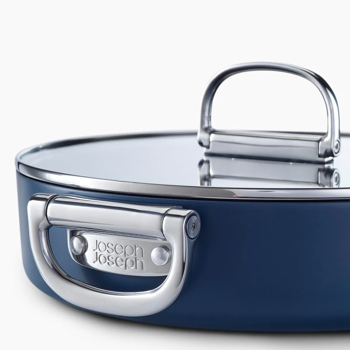 No todas las sartenes son iguales. Presentamos Space, nuestra revolucionaria gama de utensilios de cocina de calidad profesional, acabados en azul medianoche de primera calidad.