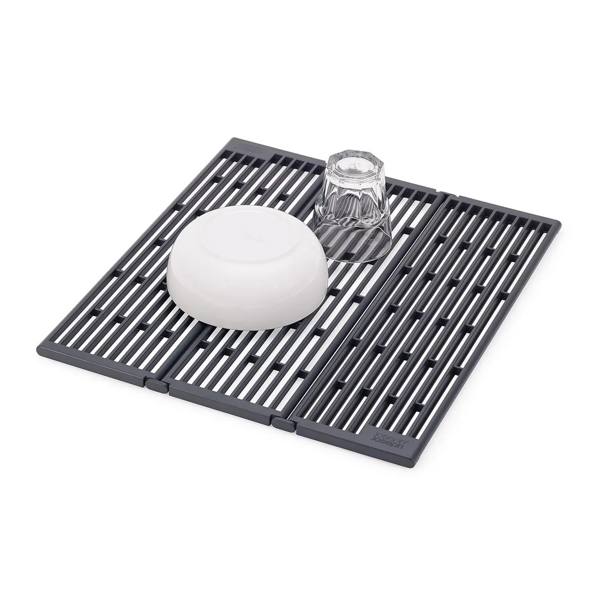 Este escurridor ajustable sobre la bacha o la mesada proporciona espacio de secado adicional y se puede plegar para crear más o menos espacio.