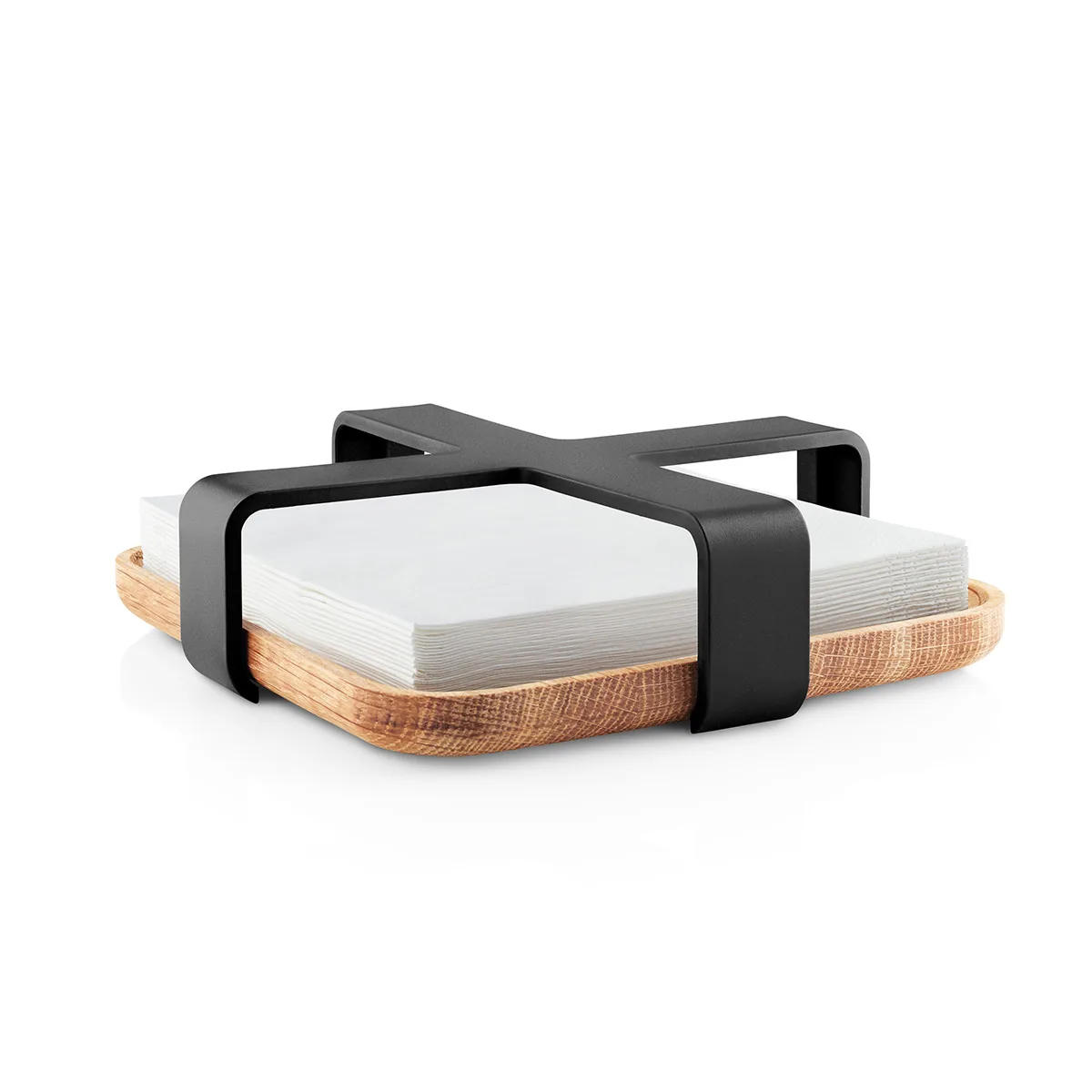 Mantén las servilletas siempre en su lugar, incluso al llevarlas al patio o balcón. Su diseño elegante y funcional, en bambú certificado FSC® y plástico negro mate, añade un toque decorativo y moderno a cualquier ocasión. Fácil de rellenar, práctico y con un estilo que combina con toda la cocina nórdica.