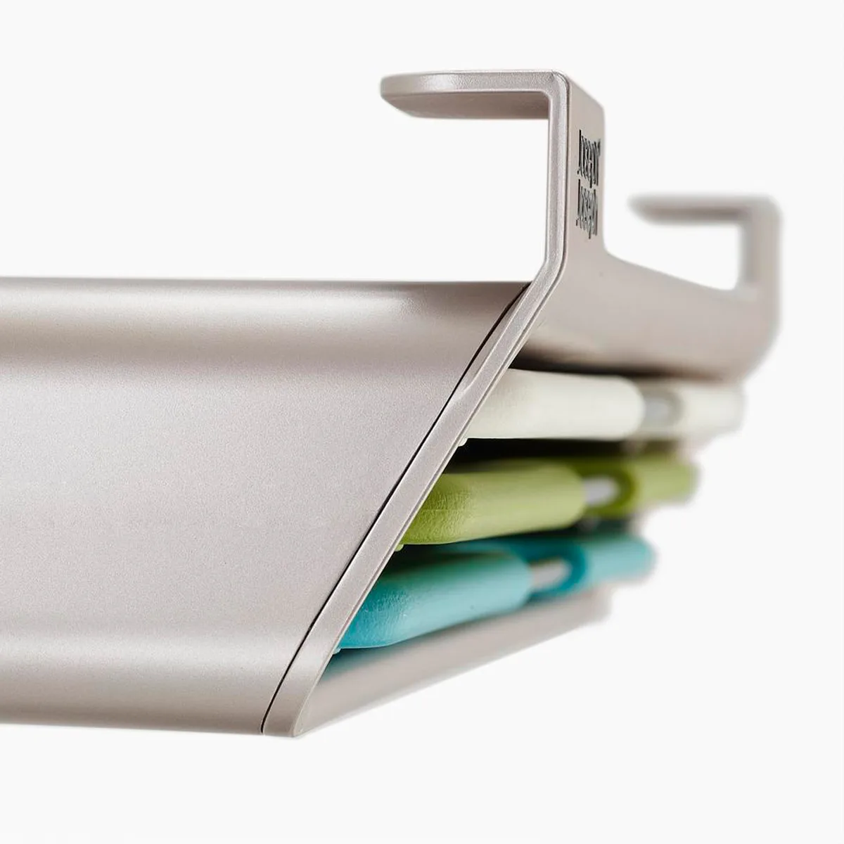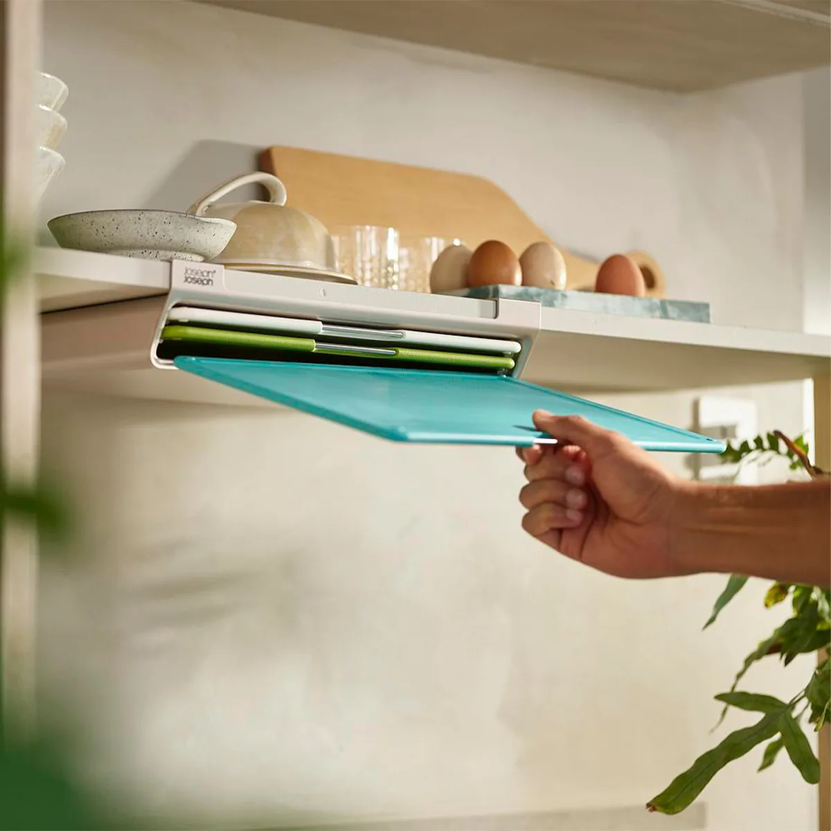 Las tablas de cortar son un elemento esencial a diario en la cocina, pero para aquellos que prefieren mantener la mesada libre de desorden, Folio Slim presenta una nueva forma de almacenarlas. Este innovador juego, que incluye tres tablas de cortar codificadas por colores y aptas para cuchillos, cuenta con un estuche de almacenamiento delgado que, espere, se engancha en el estante para ahorrar espacio, manteniendo sus tablas de cortar fuera de la encimera y al alcance de la mano.