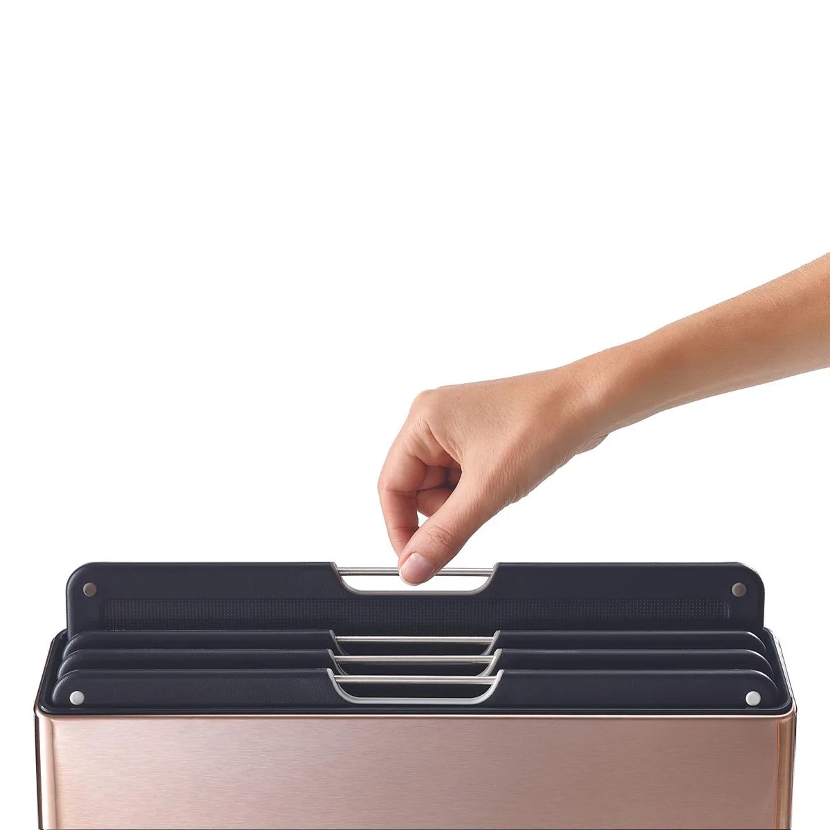 Nuestro juego de tablas para cortar de acero inoxidable de 4 piezas, Folio Steel, es perfecto para mantener todas sus tablas organizadas y de fácil acceso. Cada tabla de cortar cuenta con superficies texturizadas aptas para cuchillos y detalles codificados por colores para ayudar a que la preparación de alimentos sea más higiénica y eficiente. ¿El toque final? Una caja de acero inoxidable que mantiene las tablas limpias y ordenadas en la mesada.