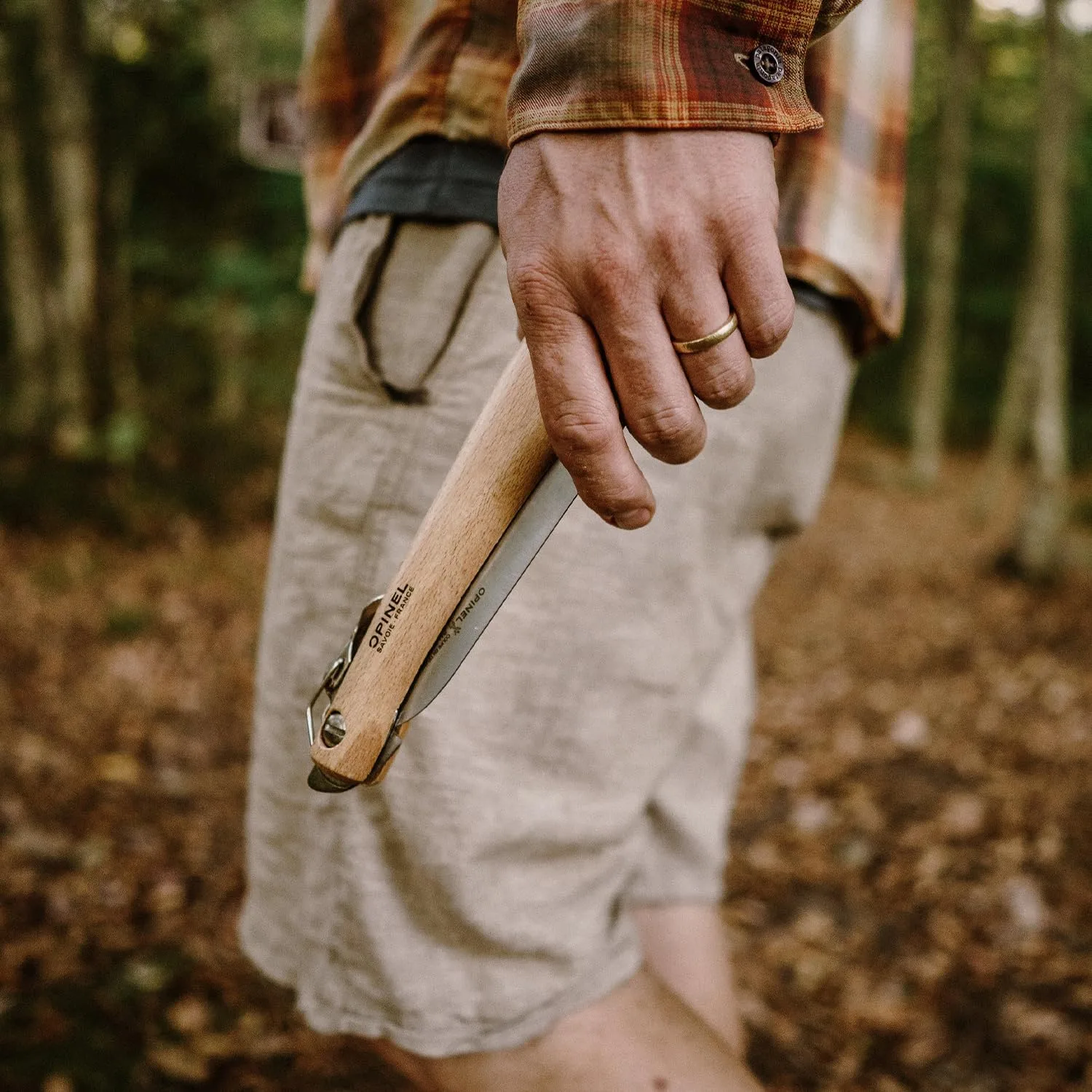 Lavar a mano solamente. No sumerjas la sierra en agua, ya que esto podría deformar el mango de madera. No lave la hoja de carbón pasándola bajo el agua, simplemente límpiela después de usarla. Si está mojada, seque inmediatamente la hoja de carbono con una toalla suave y seca. Se recomienda lubricar la hoja de carbón con un aceite apto para alimentos antes de cerrar la sierra (esto evita la oxidación). Con el tiempo, el acero al carbono puede desarrollar una pátina y posiblemente mostrar algo de corrosión, dependiendo del uso.
