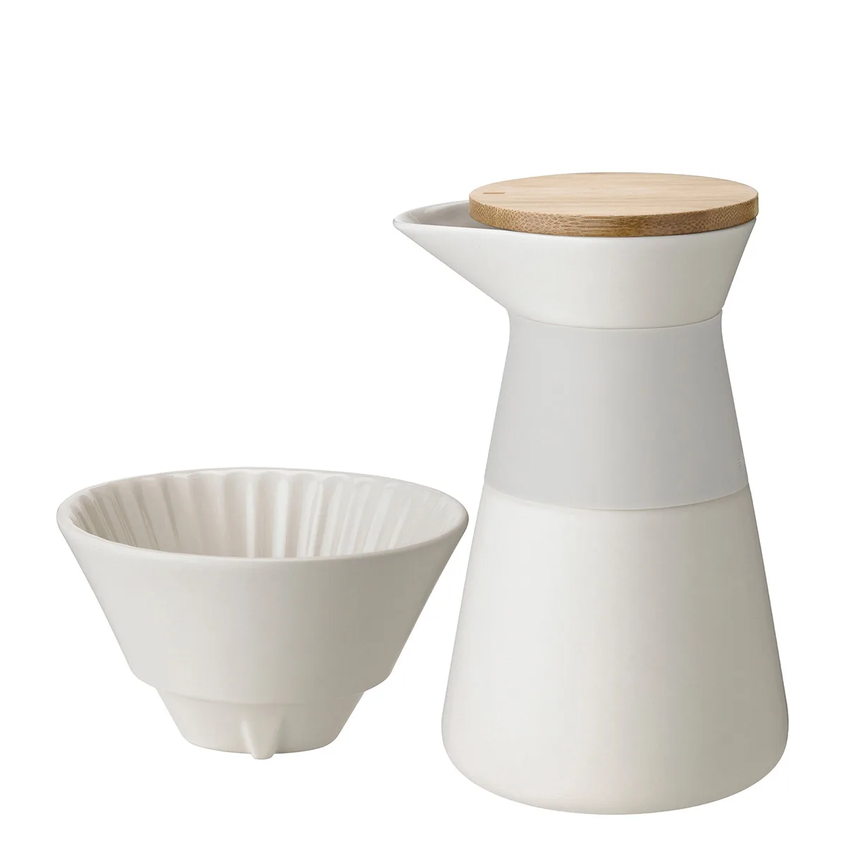 Fabricada en gres negro mate con un esmalte brillante en el interior y una tapa de bambú asiático y sostenible, la cafetera Theo es a la vez rústica y elegante. El embudo del filtro tiene tres orificios en la parte inferior, por lo que el tiempo de funcionamiento se extiende naturalmente. La cafetera Theo slow brew tiene una capacidad de 0,6 l, perfecta para 1 o 2 personas.