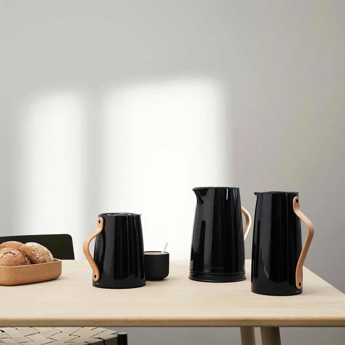 La jarra de café al vacío Emma prepara el escenario para preparar café de filtro tradicional. La jarra moderna está diseñada por HolmbäckNordenoft que ha combinado una jarra de acero lacado con un mango de madera de haya escandinava