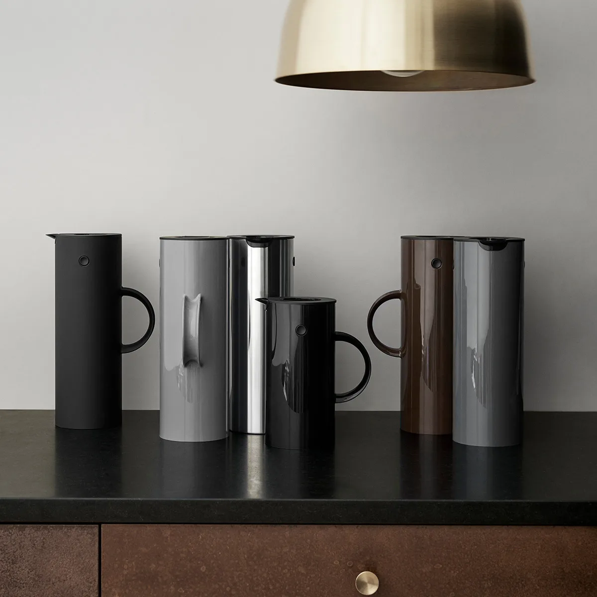 La jarra EM77 con el exclusivo tapón basculante fue creada por el diseñador danés Erik Magnussen y se produce en Dinamarca desde 1977. Hoy en día, la jarra de vacío es un icono del diseño en todo el mundo. La jarra tiene capacidad para 1 litro y se puede utilizar para café y té. El inserto de vidrio aislante mantiene el líquido caliente durante horas, o frío, si la jarra se utiliza, por ejemplo, para té helado. Además del tapón basculante, tiene un tapón de rosca para picnics y transporte de líquidos.