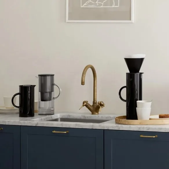 La jarra EM77 de 0,5 L está diseñada por el diseñador danés Erik Magnussen y producida en Dinamarca. La jarra presenta la misma gran funcionalidad que su «hermano mayor» en solo la mitad del tamaño. Además del tapón balancín, tiene un tapón de rosca para picnics y transporte de café o té.