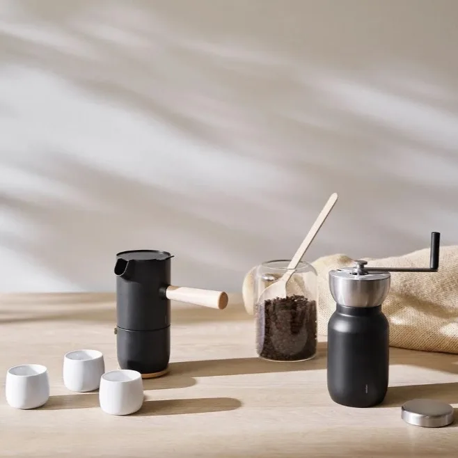 El dúo de diseñadores italianos, Daniel Debiasi y Fredrico Sandri han creado una colección de café minimalista y estética diseñada especialmente para todos los aficionados al café. Con el molinillo de café Collar puedes moler tus propios granos a mano, lo cual es esencial para la característica infusión de espresso.