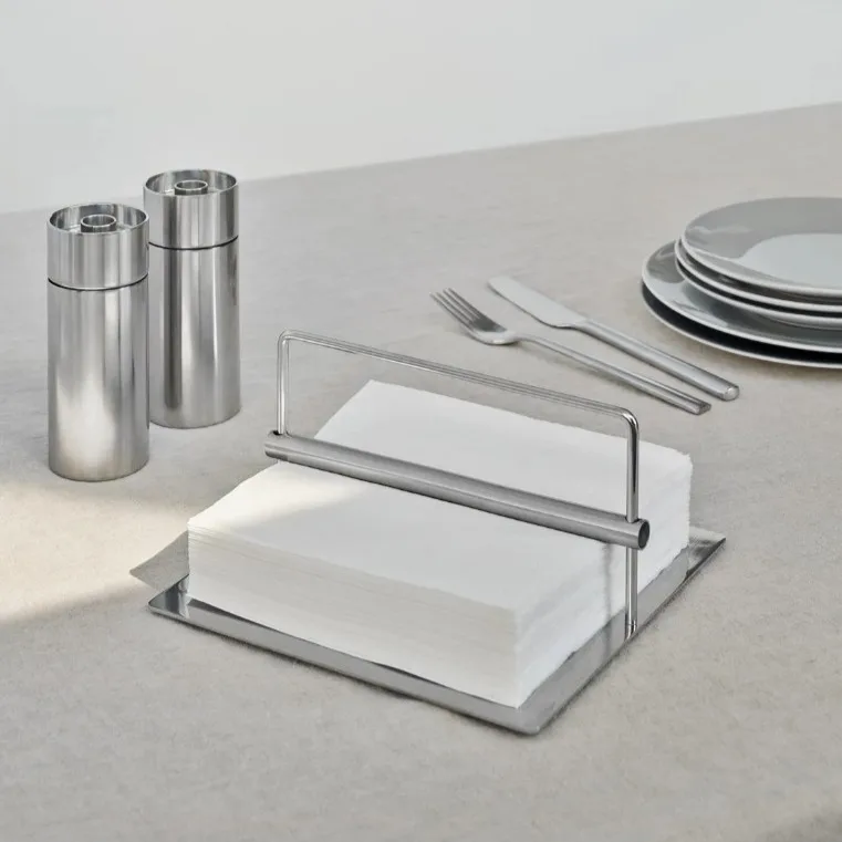 Estético servilletero diseñado por Peter Holmblad en un diseño sencillo y funcional. Mantiene las servilletas cuidadosamente apiladas en la mesa de la cocina y al aire libre en la mesa del jardín, incluso cuando sopla el viento. Es perfecto para fiestas en el jardín y para comer al aire libre en la terraza o balcón.