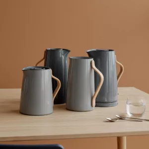 La taza de té Theo está hecha de gres marrón negruzco, en el mismo estilo que las líneas simples, escandinavas y limpias de la tetera. La taza tiene un posavasos de bambú, que le da un toque cálido y tranquilo. Evite los anillos de taza en la mesa con este posavasos de bambú asiático sostenible.