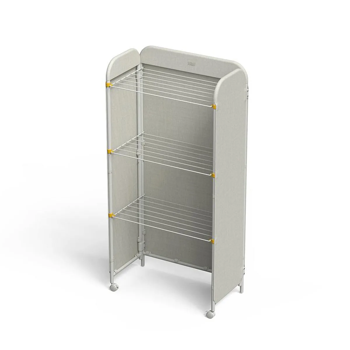 Este espacioso tendedero de ropa de 3 niveles viene con lados de tela que ocultan la ropa antiestética de la vista, reduciendo el desorden en su espacio vital y complementando una variedad de estilos interiores. Con un generoso espacio de secado, los niveles de acero se pueden plegar individualmente para cuando necesite más espacio para secar artículos más largos como pantalones o vestidos.