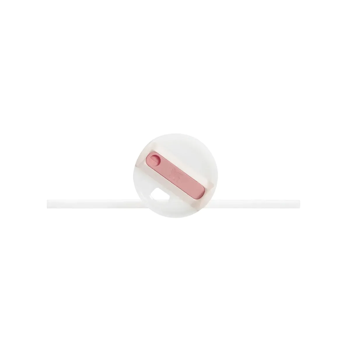 la pajita reutilizable en su lugar, una abertura para bebidas y una tapa que cubre completamente.